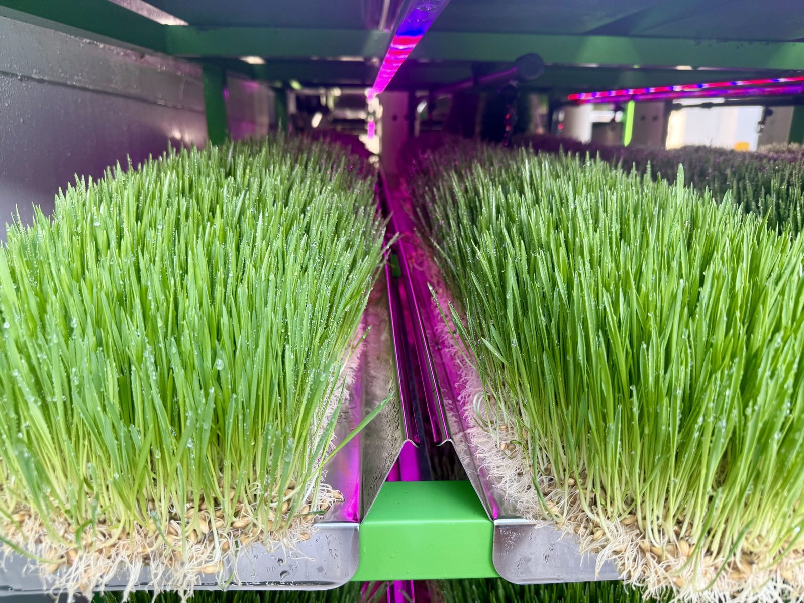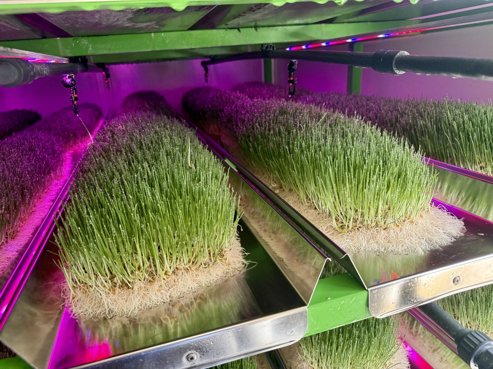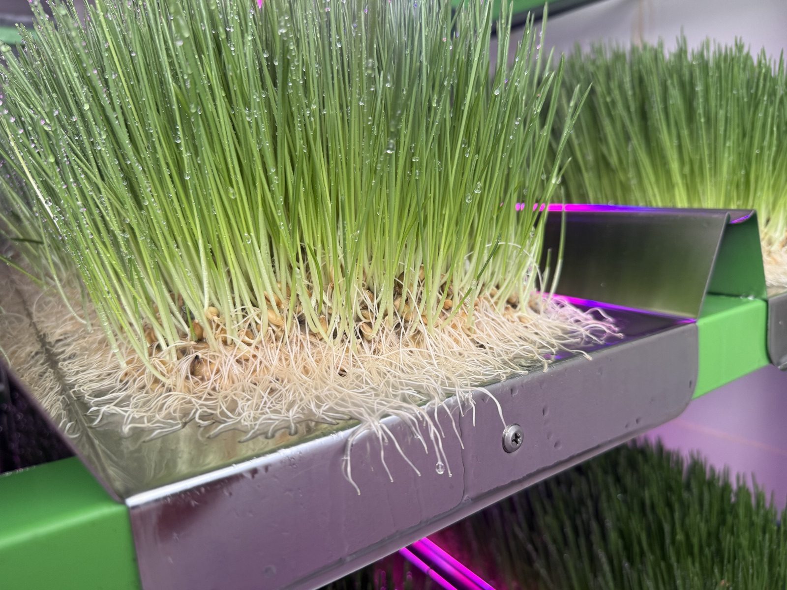 Everything you need to run it comes with the unit: a soaking trolley for grain preparation, a seeding tool, and a set of spare parts. Drop it in place, hook up power and water, and you're producing fresh fodder within the week.